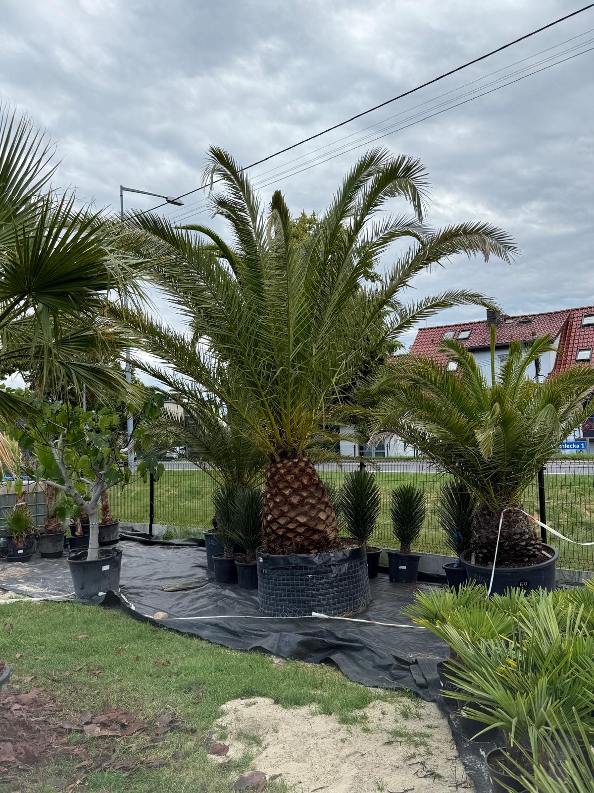 Daktylowce to najbardziej rozpoznawalny typ palmy – z długim, smukłym pniem i rozłożystą, pierzastą koroną. Wygląda jak z pocztówki z południa, ale bez problemu radzi sobie też u nas – wystarczy wybrać odpowiednią odmianę. W Palm Paradise sprowadzamy daktylowce prosto z Hiszpanii, starannie dobierając te, które dobrze znoszą nasz klimat i zimowanie. To idealny wybór do ogrodu, na taras, przy basenie – tam, gdzie ma być egzotycznie i stylowo.
